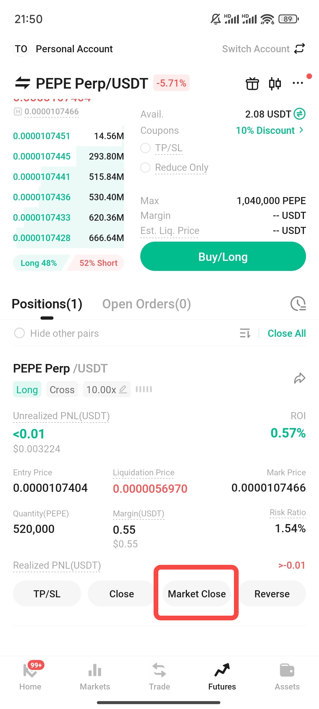 注意:此操作以市價執行,可能存在滑點,請謹慎操作。