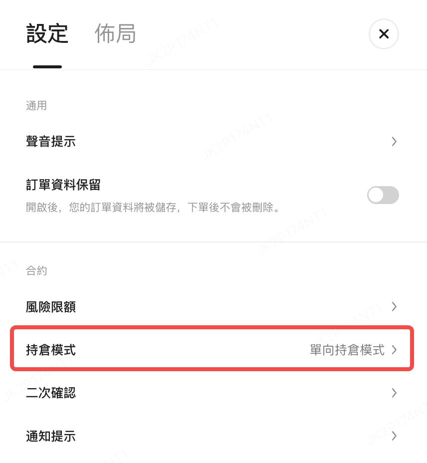 點擊頁面右上角設置,點擊設定-持倉模式-選擇單向持倉模式