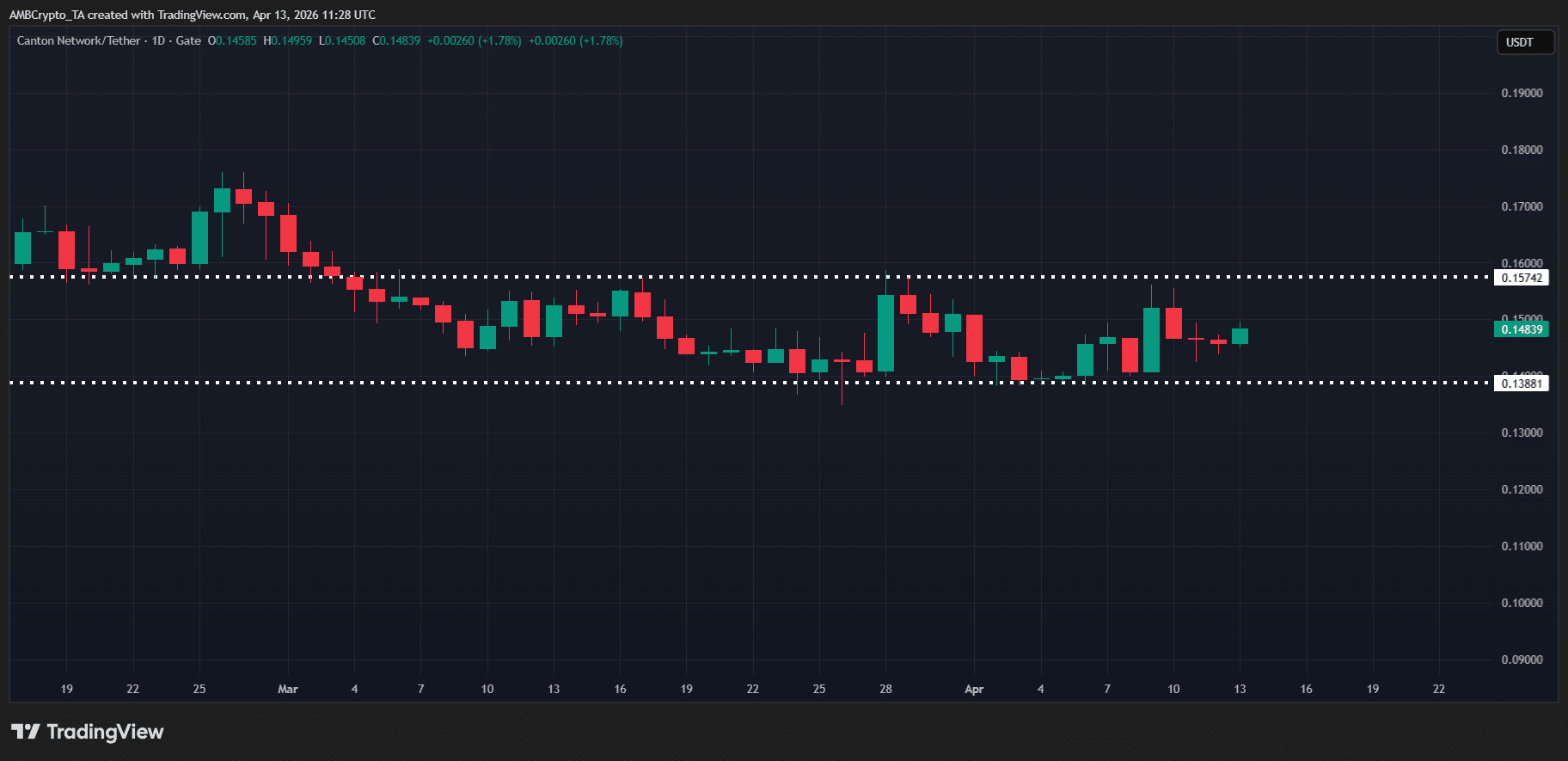 في هذا السياق، قد يكون القول إن الزخم لم ينعكس على السعر إطلاقًا مبالغة. بدلاً من ذلك، يبدو أن شبكة كانتون تبني قاعدة تجميع مع دخول رؤوس الأموال المؤسسية تدريجيًا. علاوة على ذلك، مع الخطوة الأخيرة التي اتخذها HSBC، من المتوقع أن تتعزز التدفقات المؤسسية أكثر، مما يعزز مرحلة التجميع هذه قبل أن تتشكل إعادة تسعير السوق.
