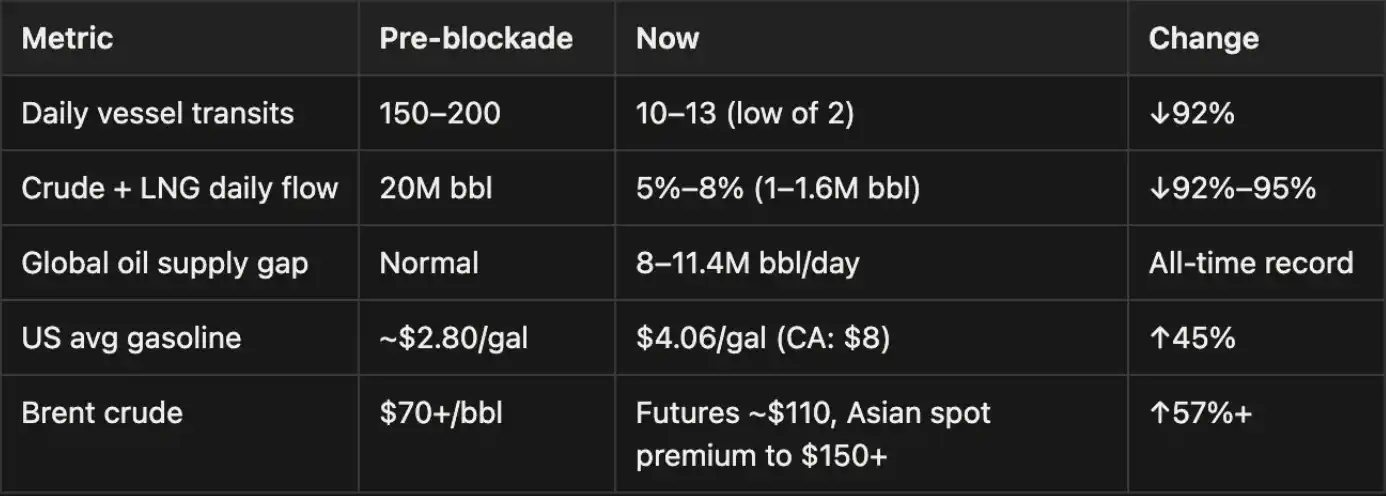 এই আঘাতের পরিমাণ ২০২২ সালের রাশিয়া-ইউক্রেন শক্তি সংকটের চেয়েও বেশি, এবং এটিকে "মানব ইতিহাসের সবচেয়ে গুরুতর শক্তি সংকট" হিসাবে উল্লেখ করা হয়েছে।