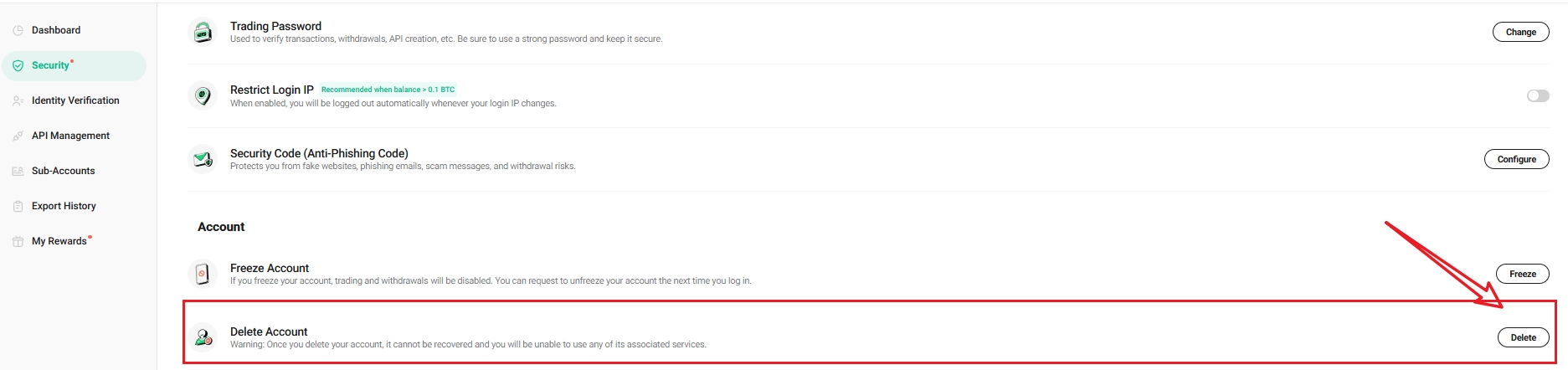 2.2 How to Delete your KuCoin Account via Web