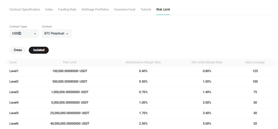 The maintenance margin varies depending on your position size and the different types of futures contracts. For details on the various contract levels, see the Risk Limit page. The maintenance margin is determined according to the value of your position and its corresponding risk limit level.