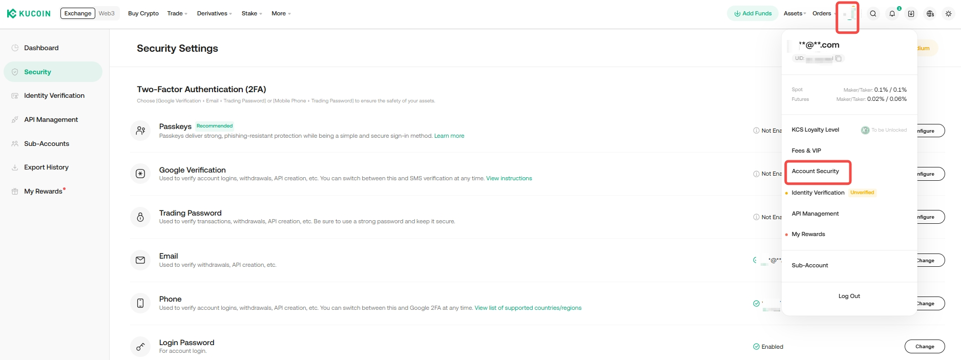 KuCoin uses several MFA methods, including: