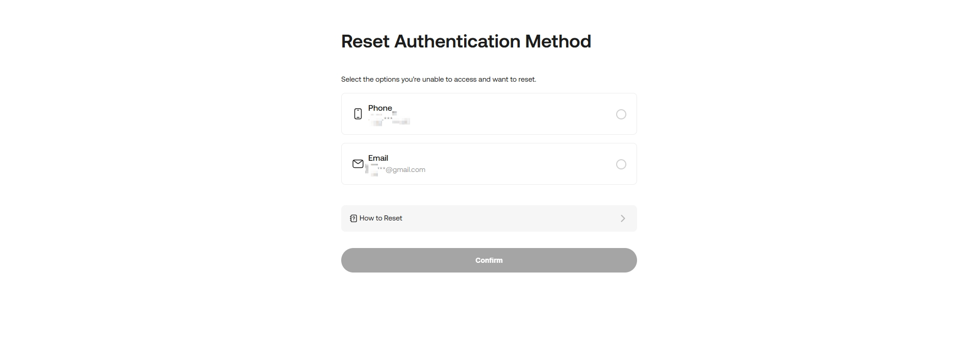 Step 2: Choose the unavailable authentication method and Confirm resetting authentication method