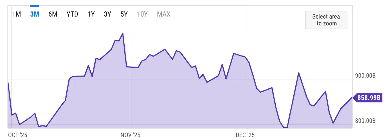 Han pasado más de un mes y medio desde que se reanudó el funcionamiento del gobierno estadounidense, y actualmente el saldo de la Tesorería General de los Estados Unidos (TGA, por sus siglas en inglés) es de aproximadamente 850 mil millones de dólares. Esto significa que ya se han liberado 100 mil millones de dólares en gastos, lo que ha proporcionado bastante liquidez al mercado.
