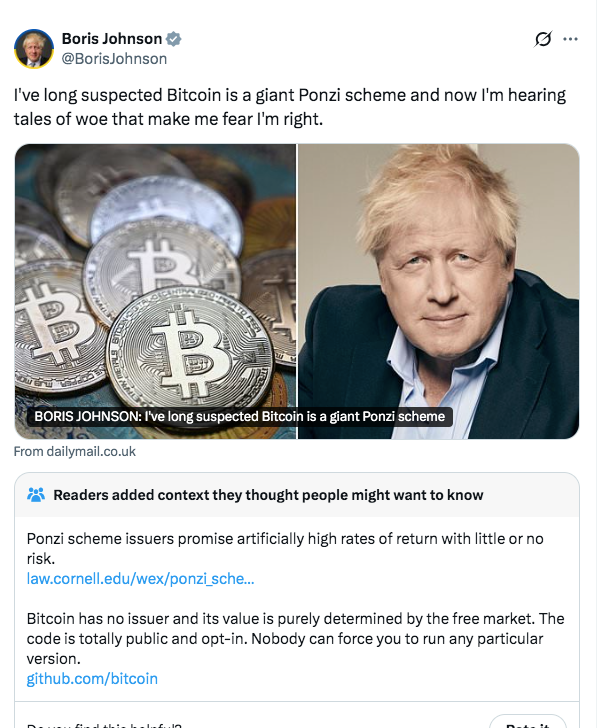 - Boris Johnson califica al bitcoin como un “esquema Ponzi”, desencadenando un nuevo debate en las noticias sobre bitcoin.