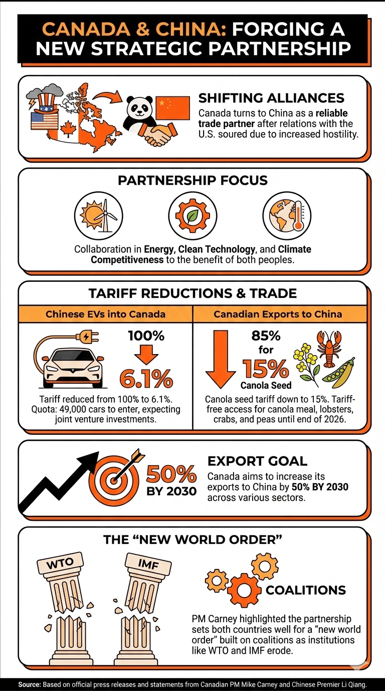 ¿Por qué Canadá está cambiando su enfoque hacia China? Canadá está fortaleciendo lazos más estrechos con China como socio comercial confiable en respuesta a las tensiones crecientes con los EE. UU. bajo la administración de Trump.