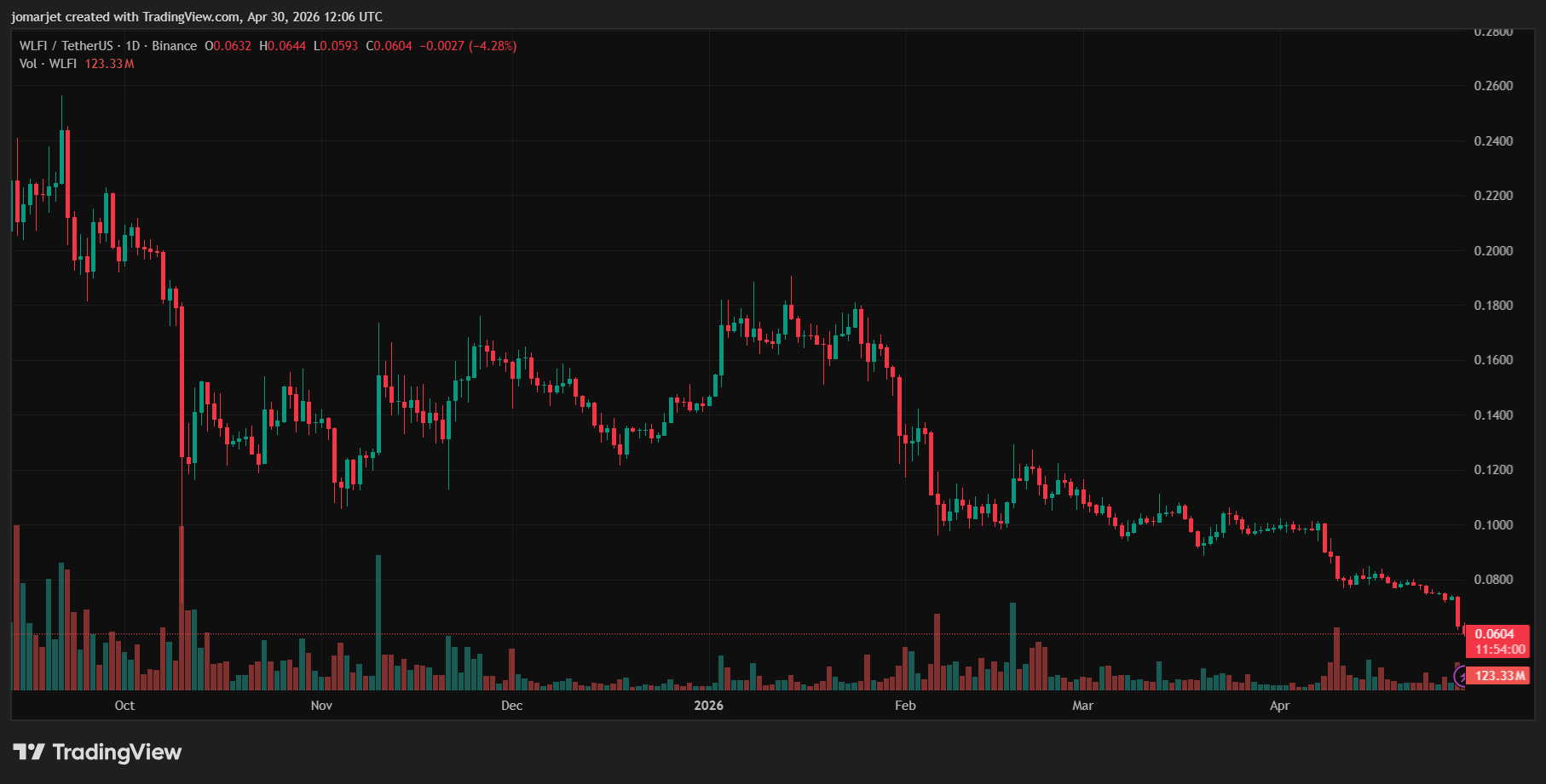 WLFI se negociaba alrededor de $0.06 al momento de redactar este texto, según datos de CoinGecko. Esto representa una caída del 70% desde que el token ingresó por primera vez a los mercados abiertos, convirtiendo la venta del miércoles en la más reciente de una larga serie de pérdidas para los titulares del proyecto DeFi vinculado a la familia Trump.
