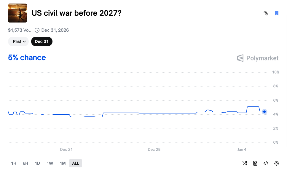 - Link ng Kontrata ng Pangyayari:https://polymarket.com/event/us-civil-war-before-2027?tid=1767611124616
