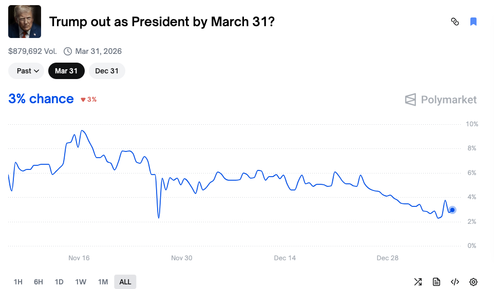 - Link ng Kontrata ng Pangyayari:https://polymarket.com/event/trump-out-as-president-by-march-31?tid=1767612762887