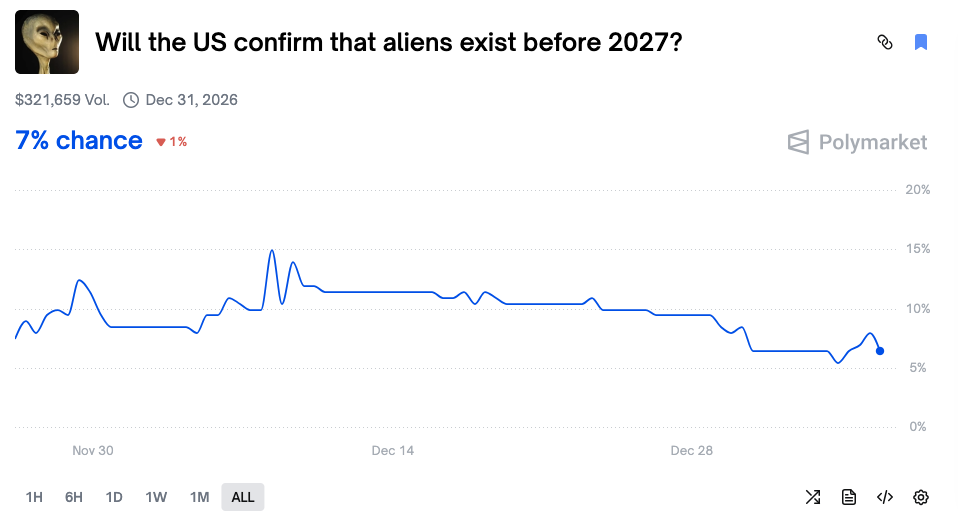 Ang may-ari ng teknolohiya ng tao at paglalakbay sa kalawakan ay nagpapalakas ng aming paniniwala na mayroon pa ring iba pang anyo ng buhay na may kaisipan sa kalawakan, ngunit wala pa kaming malinaw na ebidensya. Ang patakaran ng pagtukoy ng kontrata ng pangyayari ay kailangan ng opisyalis na pahayag mula sa U.S. Presidente, anumang miyembro ng kabinet, anumang miyembro ng Joint Chiefs of Staff, o anumang U.S. federal agency na mayroon silang buhay o teknolohiya mula sa ibang planeta. Samakatuwid, kahit na posible na naniniwala tayong lahat na mayroon sila, at posible na ang U.S. authorities ay nakipag-ugnayan na sa alien, ang pagpapalabas nito sa publiko ay isang iba't-ibang bagay. Ang lahat ng mga kondisyon na ito ay nagpapalakas ng posibilidad na ang pangyayaring ito ay hindi mangyayari.