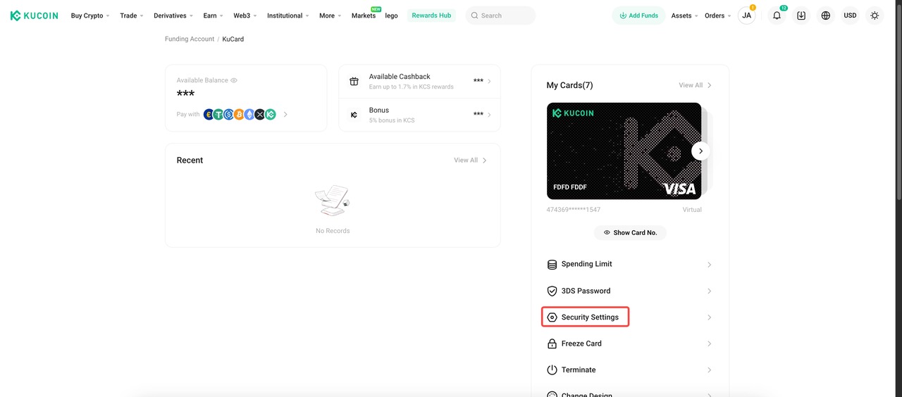 • Pumunta sa section ng KuCard at i-select ang Settings ng Card.