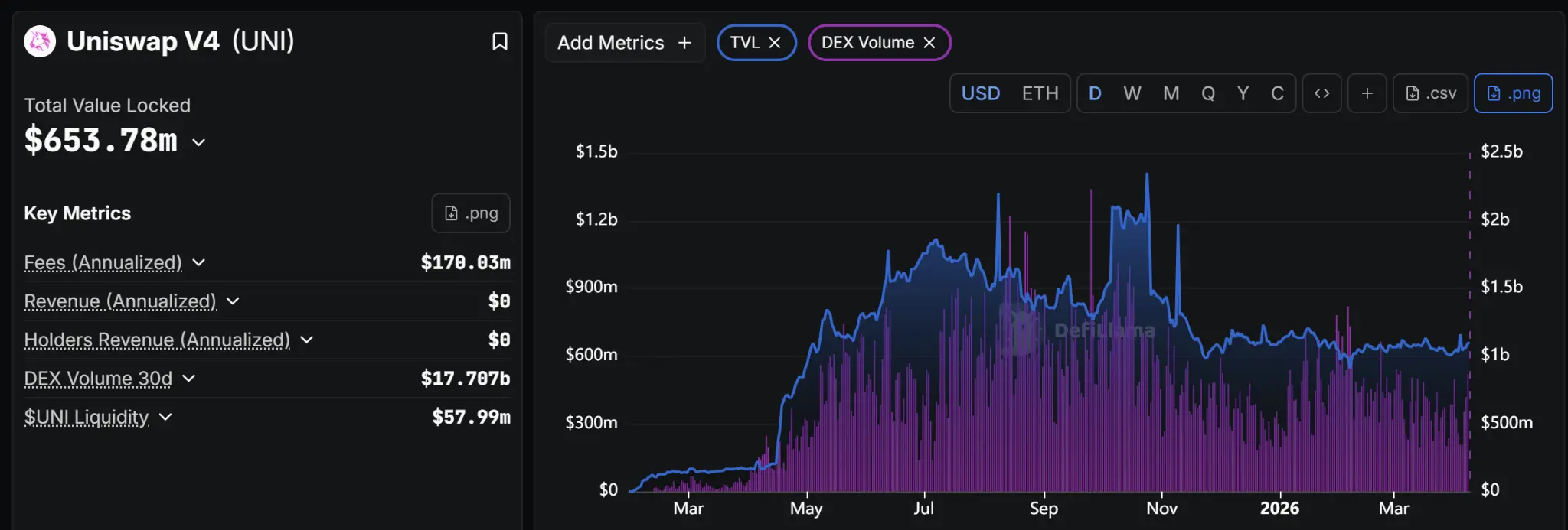 Cependant, le temps s'est arrêté en avril 2026, soit près de trois ans après l'annonce de la version V4, et le marché n'a toujours pas vu le moindre développement concernant la prochaine version d'Uniswap.
