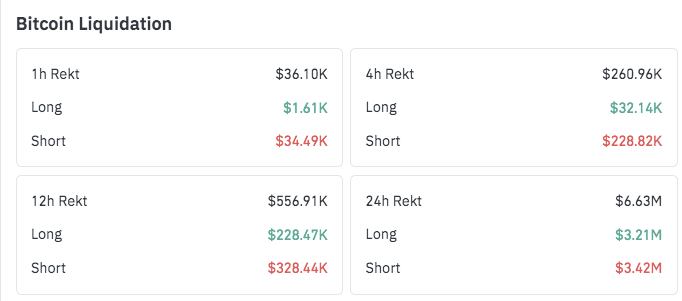 इसी बीच, डेरिवेटिव्स के डेटा से पता चलता है कि लिक्विडेशन गतिविधि में लगातार असंतुलन है, जिसमें कई समयावधियों में शॉर्ट पोज़ीशन्स का नुकसान का बड़ा हिस्सा है। पिछले 24 घंटों में, कुल लिक्विडेशन $6.63 मिलियन तक पहुँच गया, जिसमें $3.42 मिलियन शॉर्ट्स के लिए और $3.21 मिलियन लॉंग्स के लिए था, जो शॉर्ट-साइड दबाव की ओर हल्का झुकाव दर्शाता है।