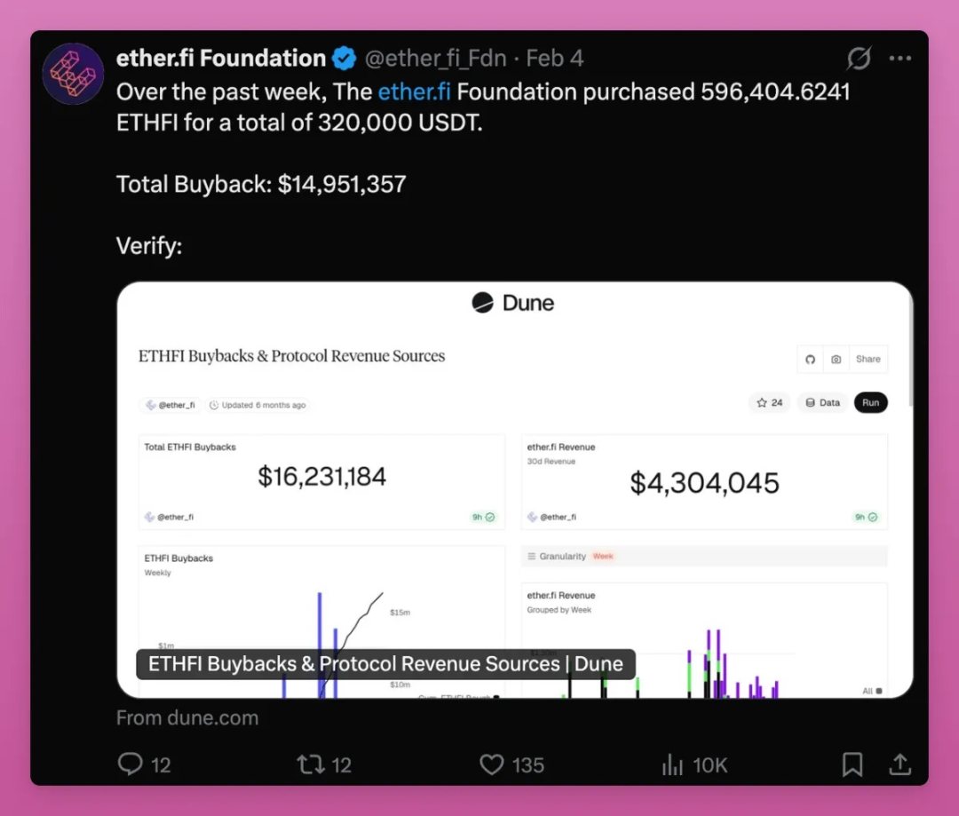 例えば、EtherFiは保有者収益ランキングには入っていないが、買戻しを行っている。