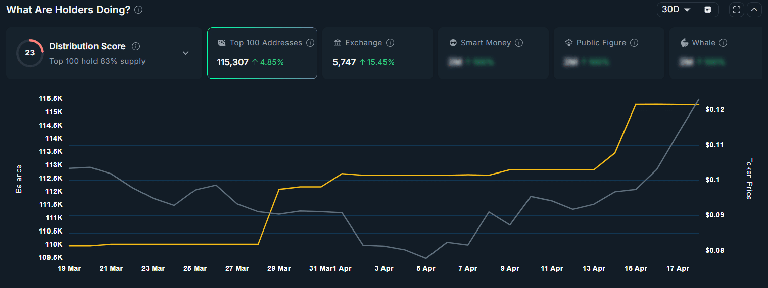分析ツールのNansenによると、上位100アドレスなどの大手プレイヤーや長期保有者がこの資産に強い関心を示しています。
