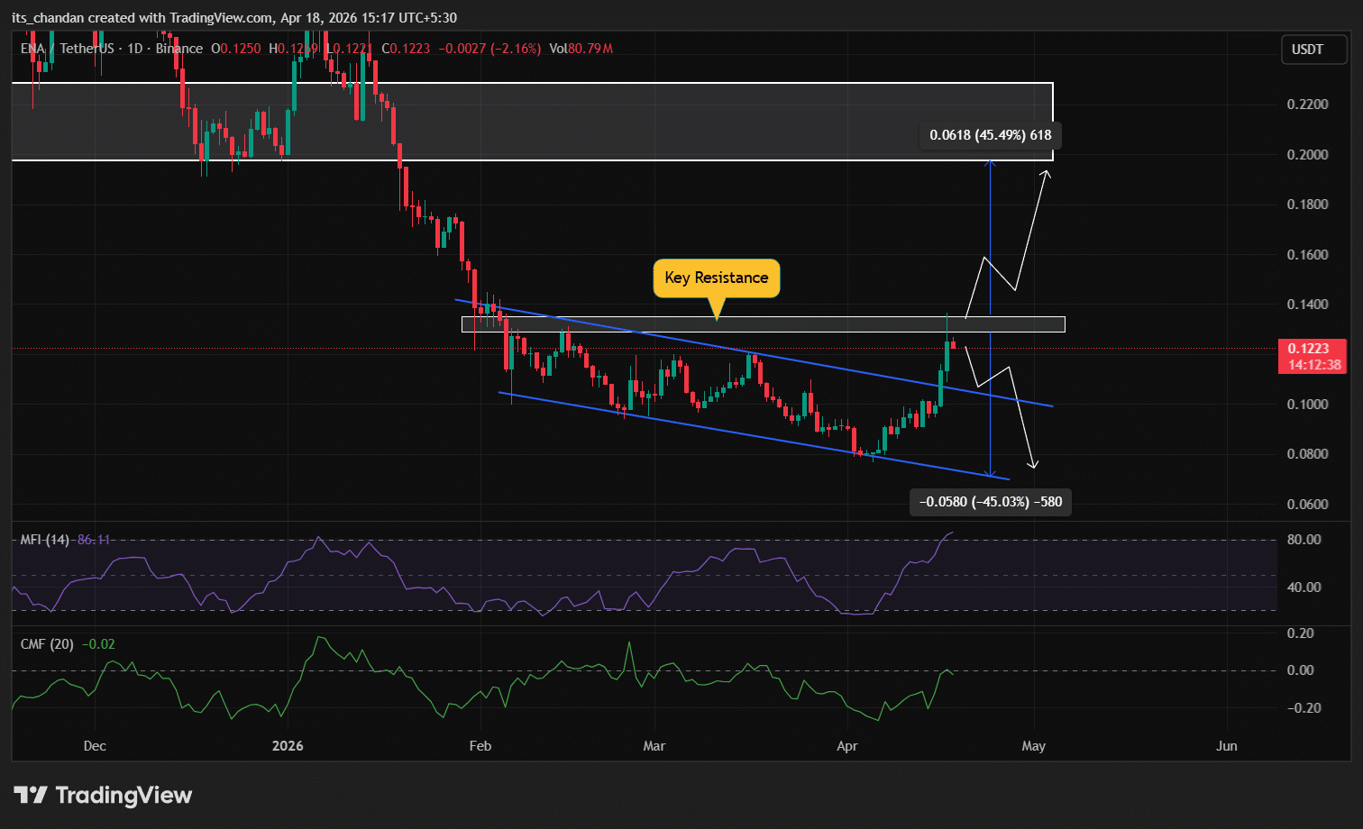現在の価格行動は、ENAがこの重要なレベルを成功裏に上抜けた場合、価格が45%以上跳ね上がり、$0.198のレベルに到達する可能性があることを示唆しています。