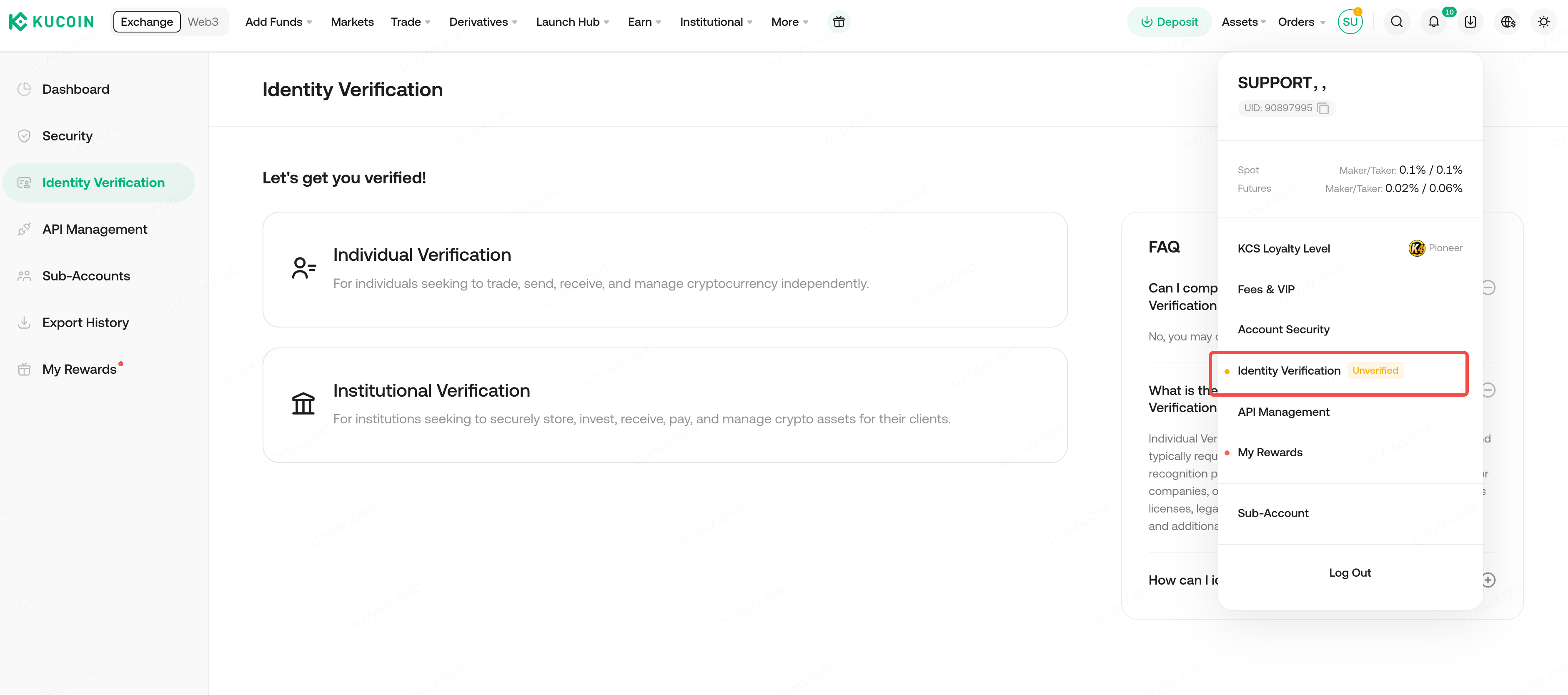 With all this in mind, we strongly recommend users to complete Identity Verification. In cases where users forget their platform credentials or if their account is compromised due to a data breach on the client’s end, the information provided will assist users in swiftly recovering their accounts. Users who complete Identity Verification can also participate in KuCoin's fiat-crypto services.