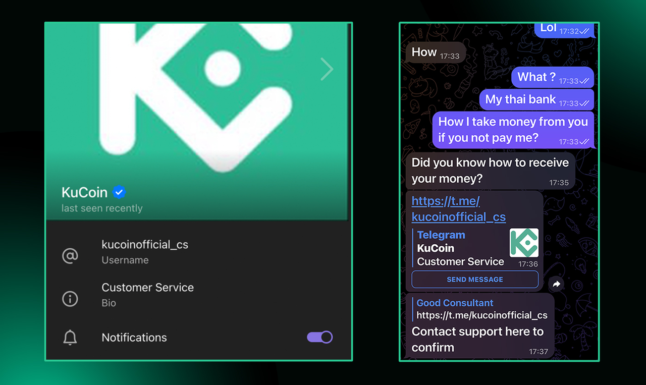 Scammer: "I am a KuCoin VIP Manager. I have an exclusive opportunity with guaranteed 100x returns!"