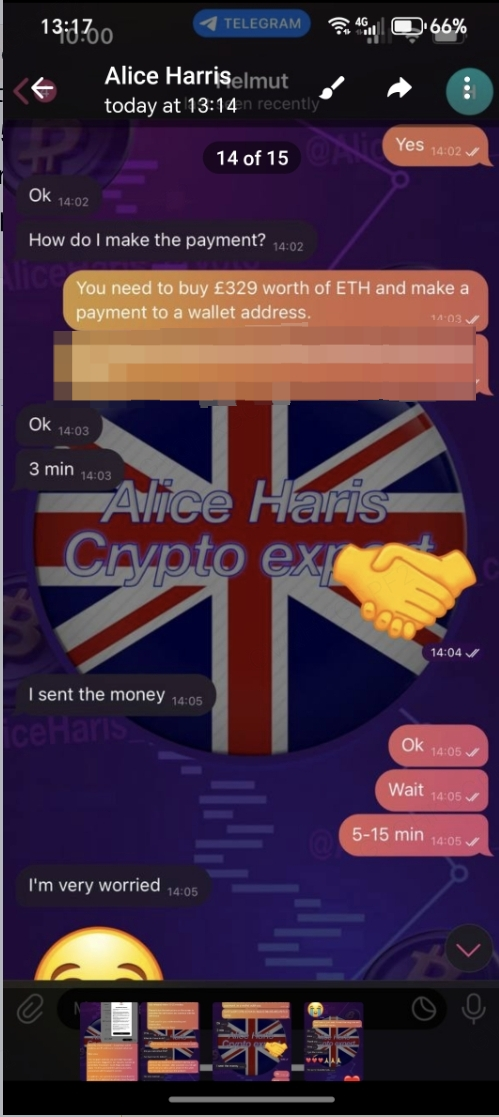 Action: User sends cryptocurrency believing it’s an investment.