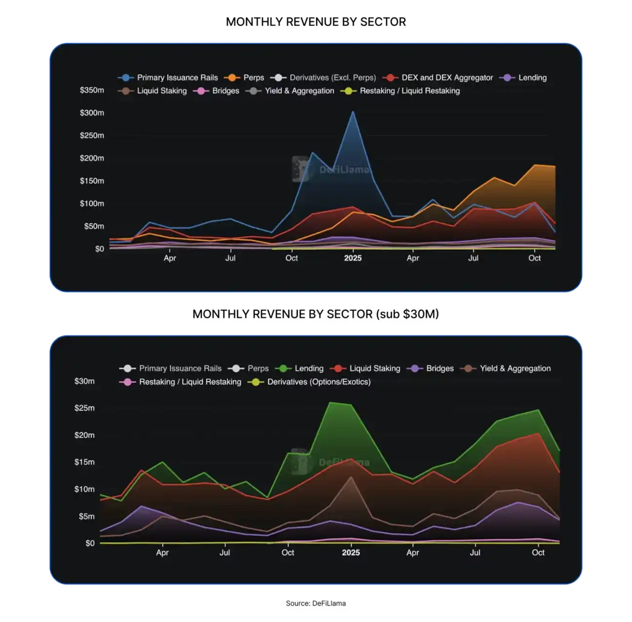 Analisis dan laporan tentang trend-trend di sekitar nod-nod ini jauh lebih menarik: "Kali ini, aliran dana ETF berbeza," "Pembiayaan industri kripto akhirnya matang pada tahun ini," "Bitcoin sedang bersedia untuk naik pada tahun ini," dan sebagainya. Baru-baru ini, apabila saya membaca laporan "Industri DeFi 2025," beberapa set carta yang menunjukkan bagaimana protokol kripto mencipta "pendapatan yang ketara" menarik perhatian saya.