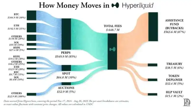 Hyperliquid membina ekosistem komuniti yang unik, dengan kira-kira 90% daripada pendapatan diberikan semula kepada pengguna melalui Hyperliquid Grant Fund.