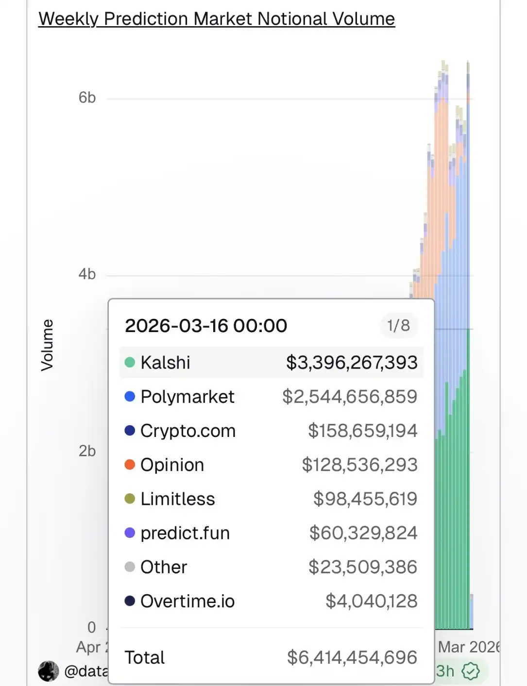 Logik tindakan ini tidak rumit. Kelajuan ledakan pasaran ramalan melebihi semua harapan: penilaian Kalshi meningkat dari $2 bilion pada Jun 2025 kepada $22 bilion pada Mac, manakala Polymarket menerima pelaburan strategik sebanyak $2 bilion daripada Intercontinental Exchange pada Oktober 2025, dengan penilaian kini mencapai $20 bilion.