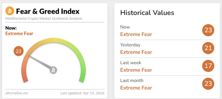 Walaupun sentimen pasaran yang lebih luas masih berada dalam zon 'ketakutan ekstrem', Indeks Ketakutan dan Keserakahan Kripto naik dari 12 kepada 23 pada masa pelaporan. Dengan kata lain, kepanikan pasaran yang lebih luas mereda, tetapi berhati-hati masih berterusan kerana ia masih terperangkap dalam tahap 'ketakutan ekstrem'.