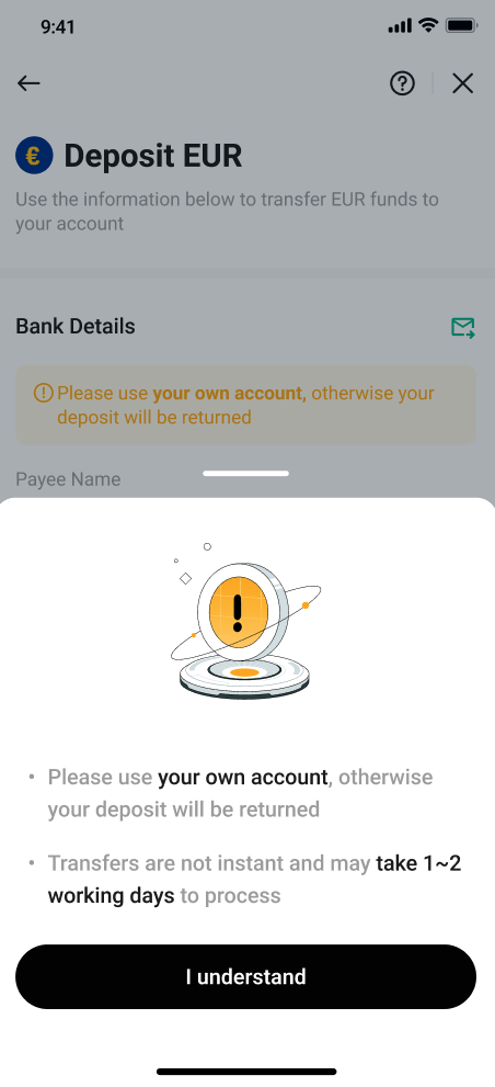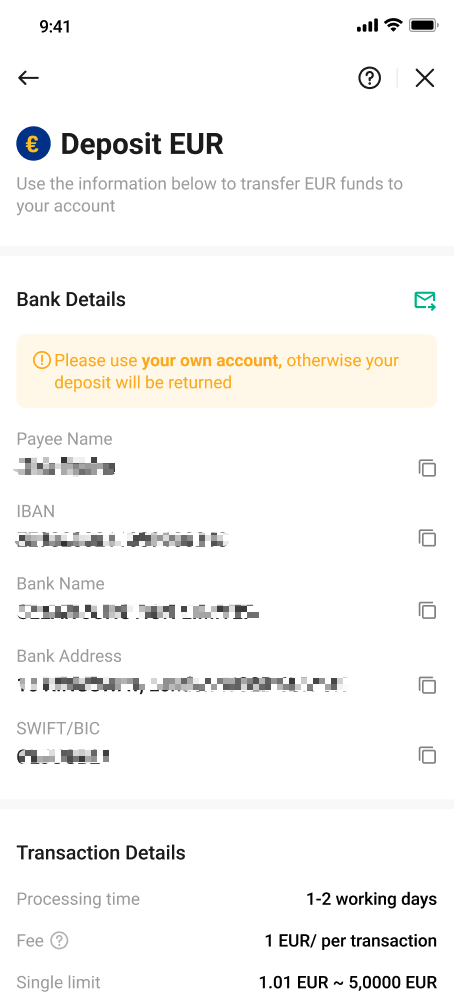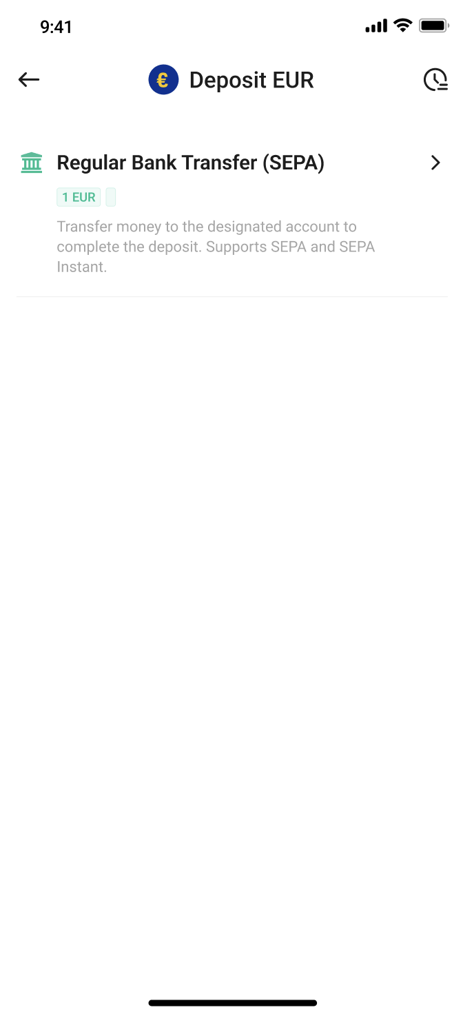 3. How to Deposit EUR Using Regular Bank Transfer (SEPA)? (App Version)
