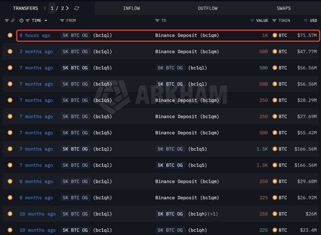 The names behind the selling tell the story. A wallet inactive since 2013 just liquidated 3,500 BTC for $442 million in profit.