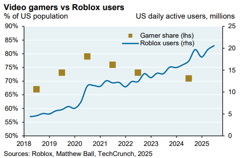 Over 20% of Americans now play Roblox daily. I don’t know what that means for America, but I’m sure it means something.