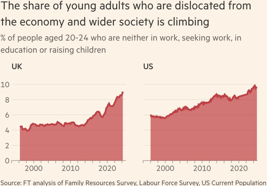 As measured by employment and parenthood, the FT reports that young adults are becoming increasingly disengaged from society. I’m guessing this upward trend is at least partially caused by the upward trend in negative headlines.