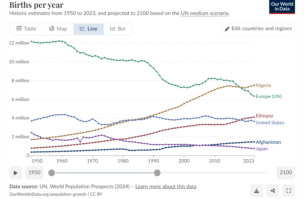 There are now more births per year in Nigeria than all of Europe; more in Ethiopia than the US; and more in Afghanistan than Japan.