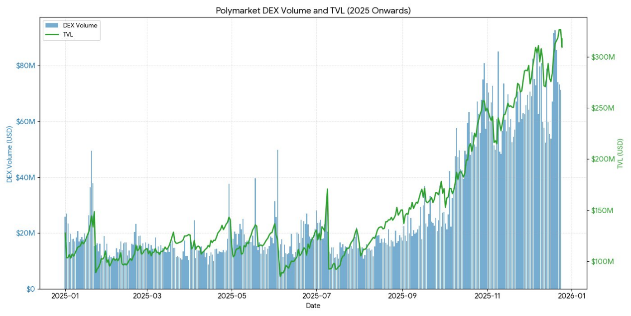 - Polymarket processed over $9 billion in trading volume in 2024, with a peak of 314,500 monthly active traders.