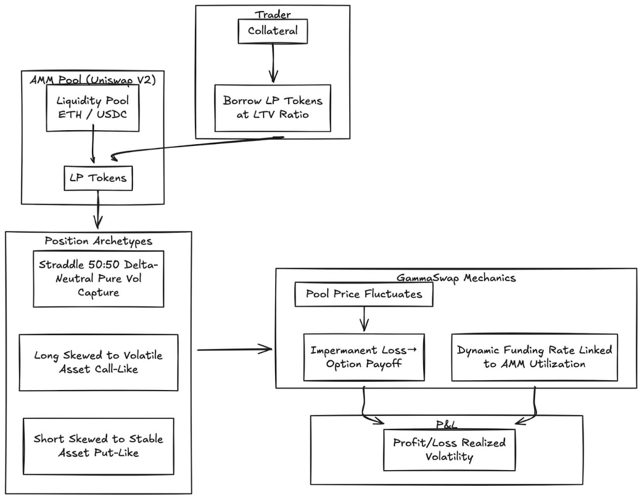 - Options as Dynamic Hedging Tools: In Uniswap v3/v4, liquidity providers (LPs) can reduce impermanent loss by purchasing put options or constructing delta-neutral spreads. GammaSwap and Panoptic allow liquidity to be used as collateral for continuous option premiums, thereby offsetting the risk exposure of AMMs.