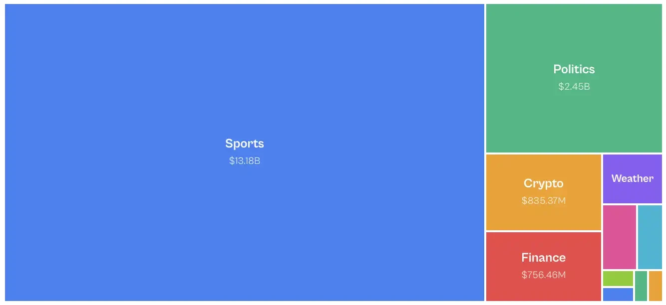 Launched in 2021, Kalshi is the first prediction market in the United States regulated by the CFTC. Initially focused on economic and weather data, the platform remained niche until 2024. The 2024 election cycle triggered explosive growth after the platform legally overcame the CFTC and gained the right to list political contracts. The sports market, introduced in 2025, now dominates trading activity. Trading volume is highly unevenly distributed across categories: sports account for 72% of nominal trading volume, followed by politics (13%) and cryptocurrencies (5%).