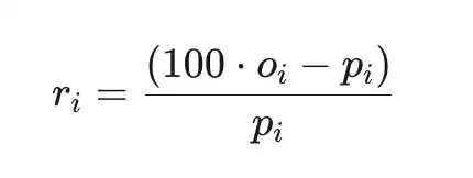 The total excess return (ri) is the return relative to the cost (before platform fees), where pi is the price in cents, and oi∈{0,1} is the outcome.