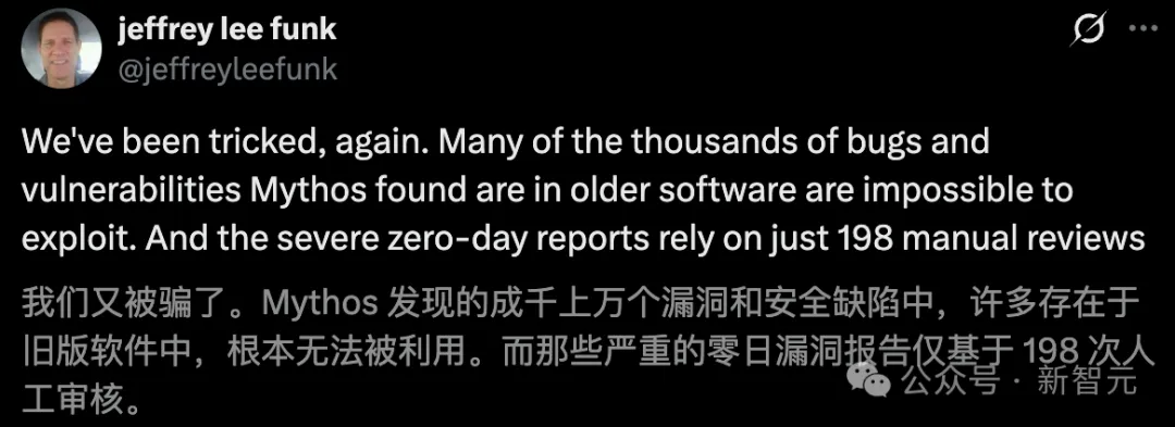 Researchers from the AISLE experiment also retested Mythos' "results" and found: