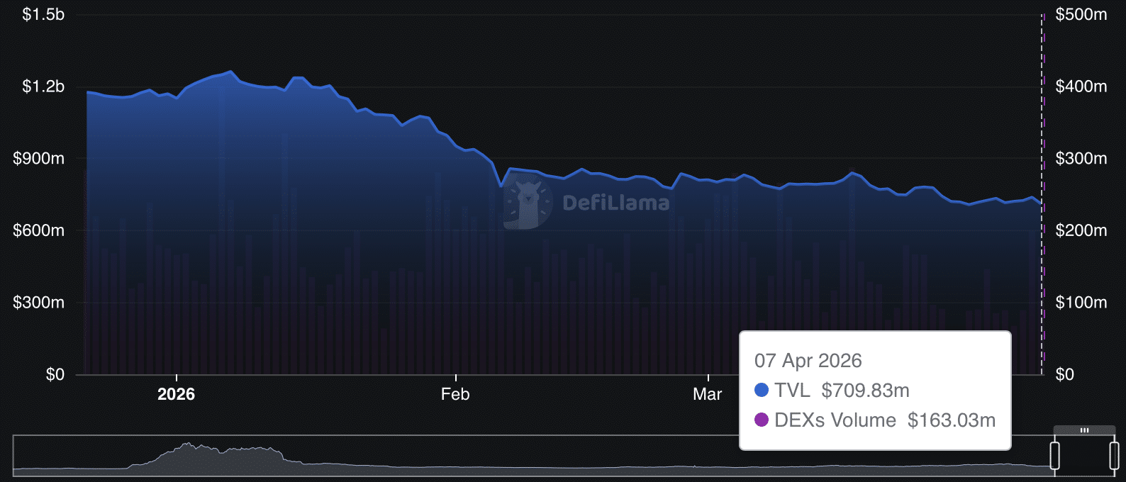Total Value Locked [TVL] dropped to $720 million, its lowest level since the 9th of July 2024. That period also reflected weak sentiment and reduced activity.
