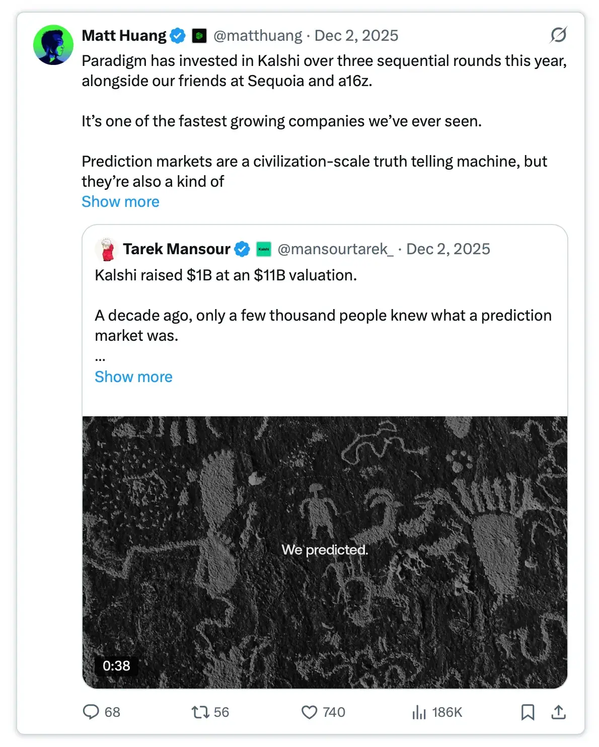 a16z points out that the core transformation is not merely "more markets" or higher trading volumes, but rather a reconfiguration of market structure. As the cost of block space decreases, oracle performance improves, and user experience frictions are reduced, markets are no longer sporadic events tied to elections or sports events, but instead begin to function as a continuous layer for signal extraction. Everything can be added to the trading list: macroeconomic data releases, protocol upgrades, regulatory votes, corporate actions, and even probabilistic outcomes of long-tail events.