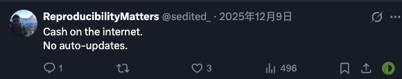 Of course, real tech geeks can often be somewhat unpredictable. TheCharlatan frequently retweets other technical posts on X, but rarely shares their own opinions (as of May 2025).Post an article(He claimed to dislike NFTs even more), but starting from June 2025, he began repeating a tweet every month with the content "Cash on the internet. No auto-updates."