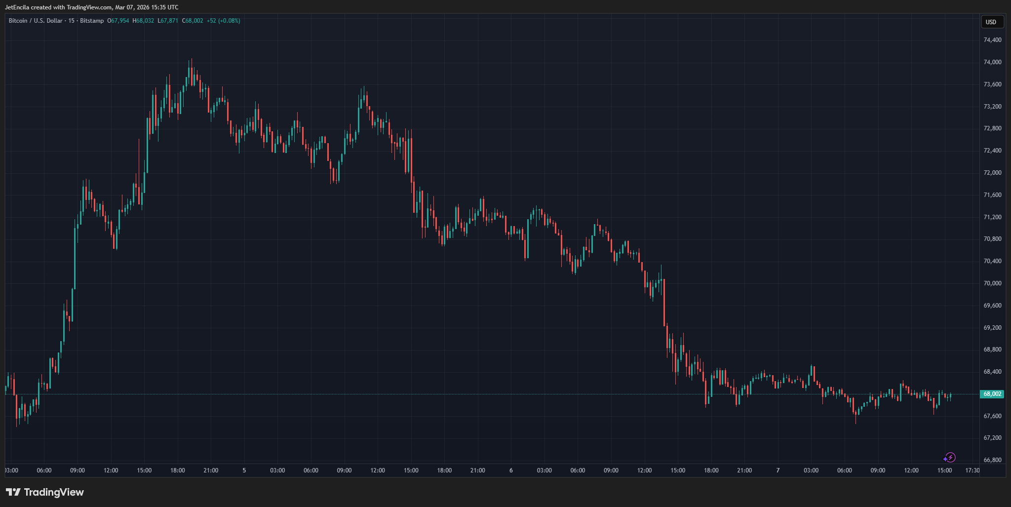 Once Bitcoin crossed $74,000 on Wednesday, those same wallets began offloading. By Friday, roughly 66% of what they had accumulated over that 10-day window had been sold back into the market.