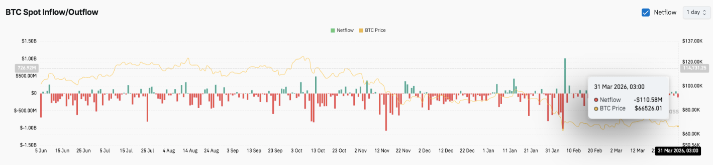 - Spot outflows and bearish indicators confirm persistent selling pressure and trend hesitation.