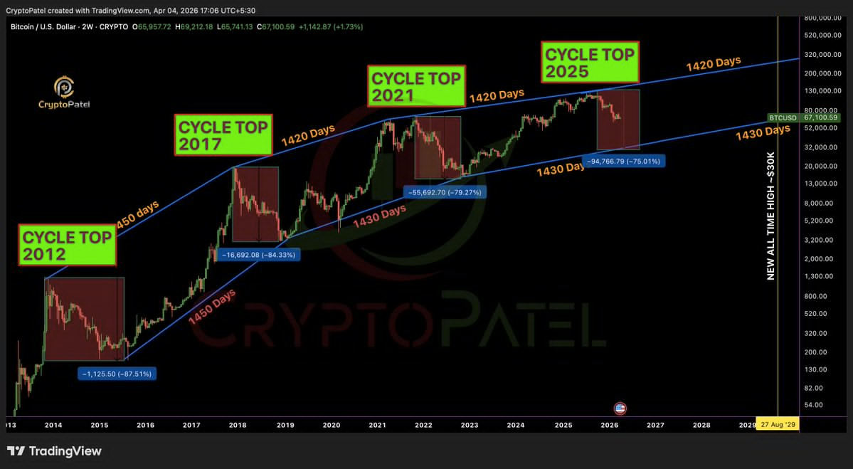 However, Crypto Patel presents a more cautious outlook based on historical cycles. His analysis indicates that major Bitcoin peaks often precede deep corrections. Consequently, he suggests a possible drop toward the $30,000 to $35,000 range before the next expansion phase.