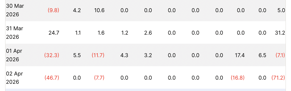 Zooming out, on the price front, ETH was trading at $2,028.64 after a drop of 1.34% in the past 24 hours. Meanwhile, the Spot Ethereum [ETH] ETF was seeing outflows even as a new quarter began.
