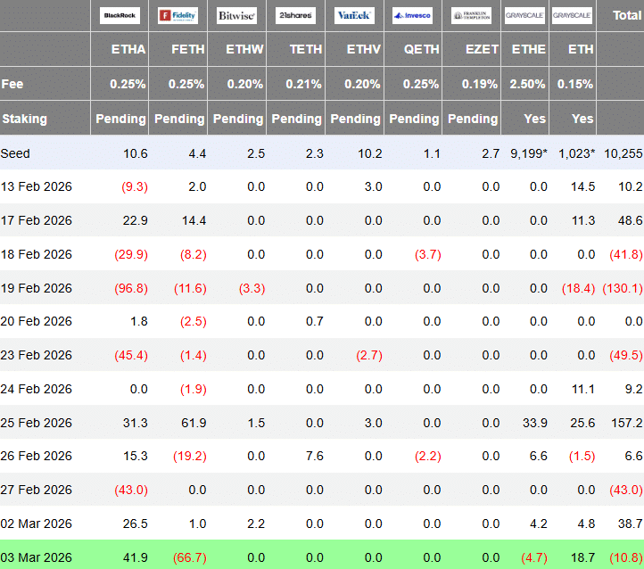 On 03 March 2026, BlackRock bought $41.9 million worth of Ethereum, giving the market a solid boost.