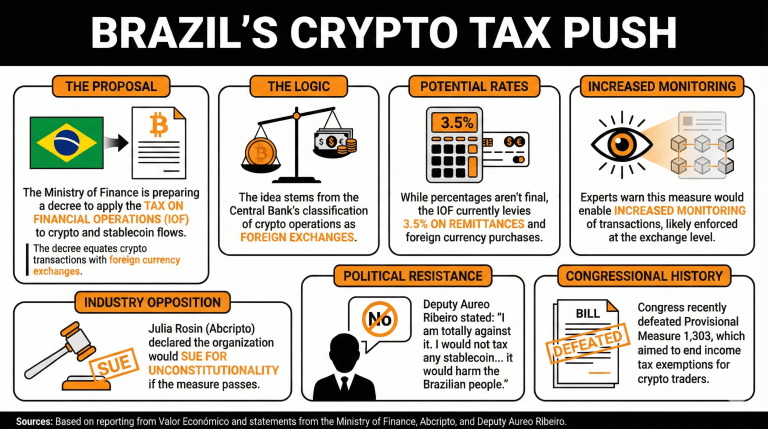 Brazil Aims to Tax Crypto Flows by Decree, Strong Opposition Expected
