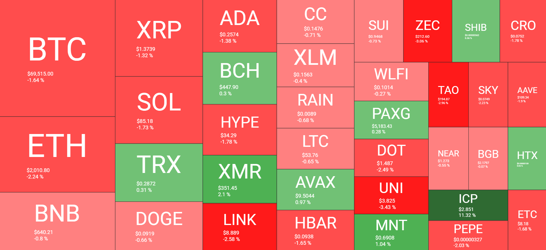 The post ICP and PI Defy Altcoin Correction, BTC Price Slips Below $70K: Market Watch appeared first on CryptoPotato.