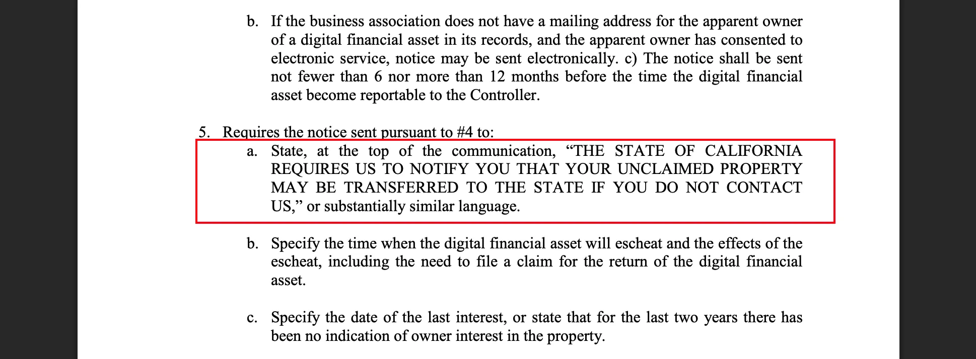 To prevent users from having their assets passively confiscated due to forgetfulness, SB 822 establishes clearMandatory Notification Procedure.