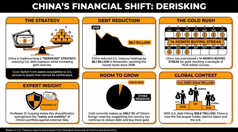 What recent actions has China taken regarding U.S. debt? In November, China sold $6.1 billion in U.S. Treasuries, reaching its lowest exposure since 2008, indicating a shift in its investment strategy.